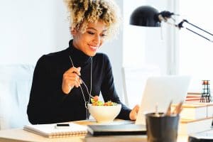 Eating healthy at work can be difficult for many people, but a little planning and a side of discipline can lead to a healthier diet overall.